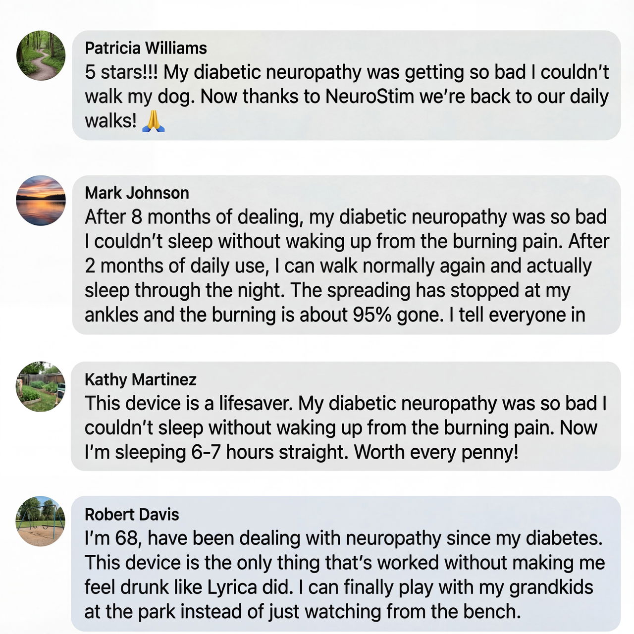 “So gentle and soothing. The pulses felt like tiny massage waves going deep — nothing like surface creams. I've tried EVERYTHING for 2 years. Gabapentin, massagers, lidocaine. Will never go back. Real relief for this 67 year old who forgot what sleeping felt like.”