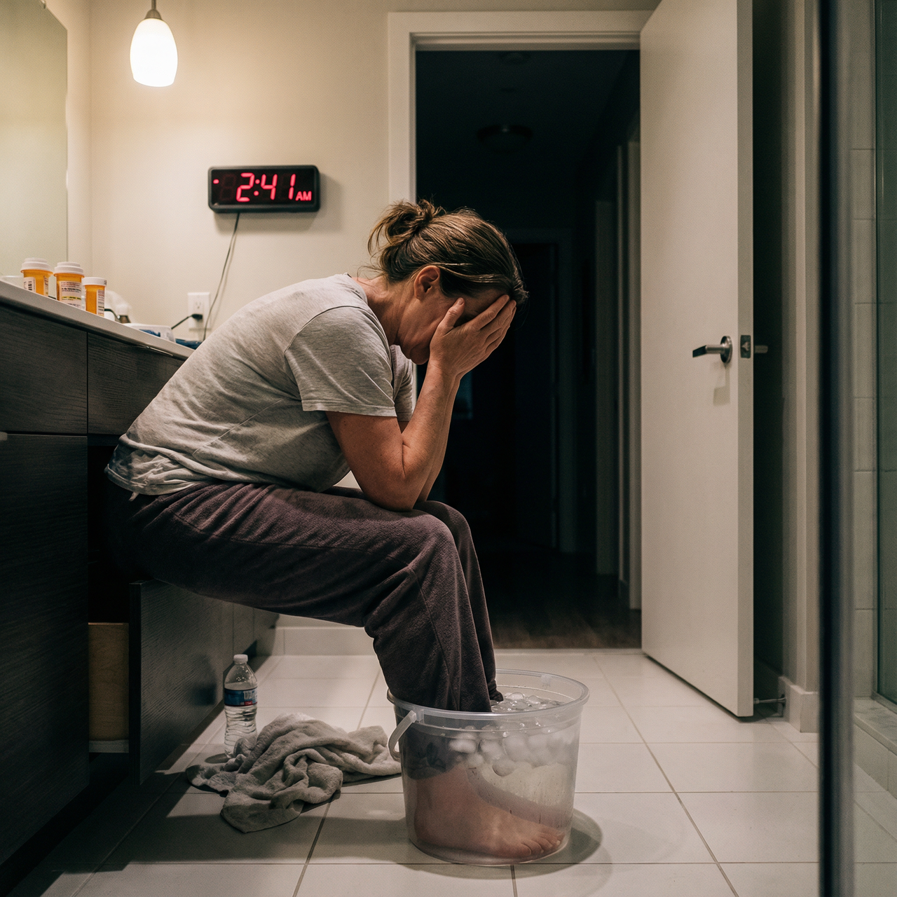 2:41 AM. Bathroom. My wife Melissa, feet in ice water, sobbing.