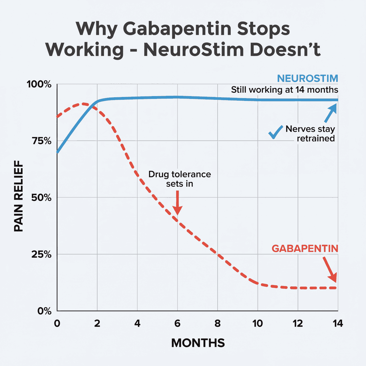Weeks 9–12: You have your life back. No gabapentin brain fog. No ice water at 3AM. You're booking that trip you put off for 2 years.